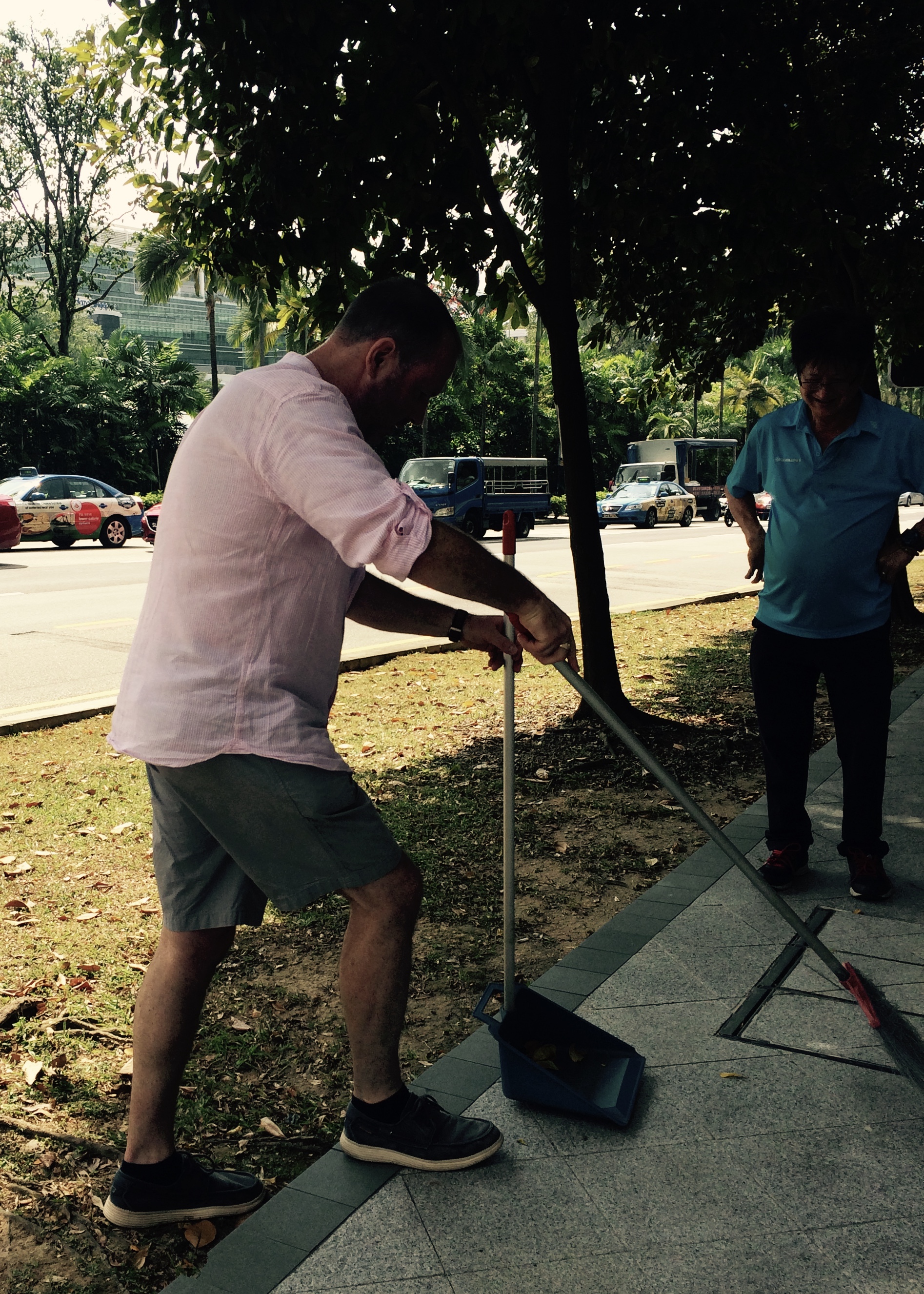 Sweeping the Penang Road, Singapore. 4th August, 2017