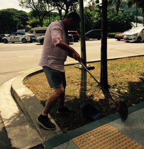 Sweeping the Penang Road, Singapore. 4th August, 2017