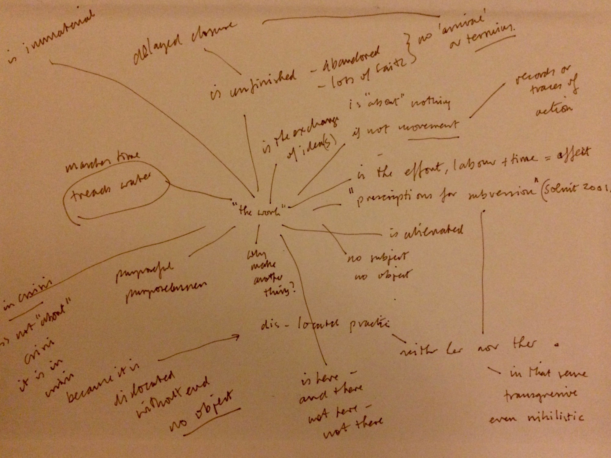 Just riffing in the studio, seeing where the marks take me and experimenting with a different kind of phrasing – one phrase or eventual line is dislocated by a subsequent mark – making way for another mark or line and obscuring what might have been the subject. The object always seems beyond reach foregrounding the moment. The moments of contact and phrasings build into gestures. Again destroyed. Why? Is it because I do not know what I am doing? No. It’s because the idea of riffing and playing is just that – an idea, short of becoming a thing.